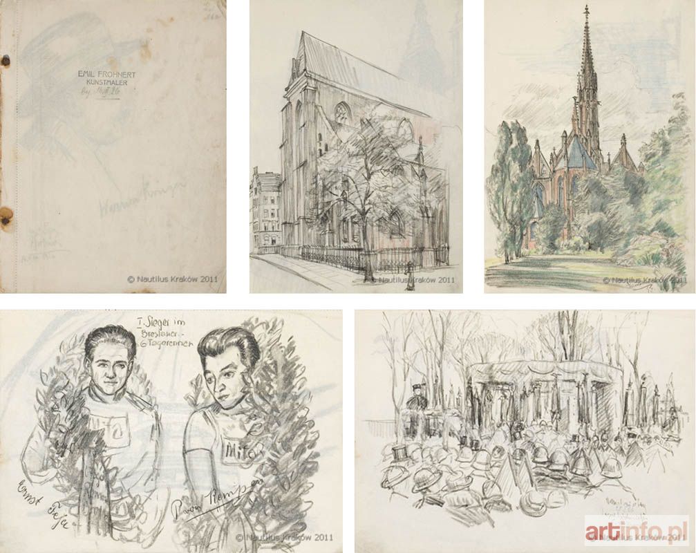Ołówek, kredka, papier; wym.: 24,5 x 33,5 cm; część szkiców sygnowana. Szkicownik znanego wrocławskiego artysty dokumentujący architekturę Wrocławia i regionu, typy ludzkie, kwiaty; kart 17 (na 13 szkice, 4 karty czyste).