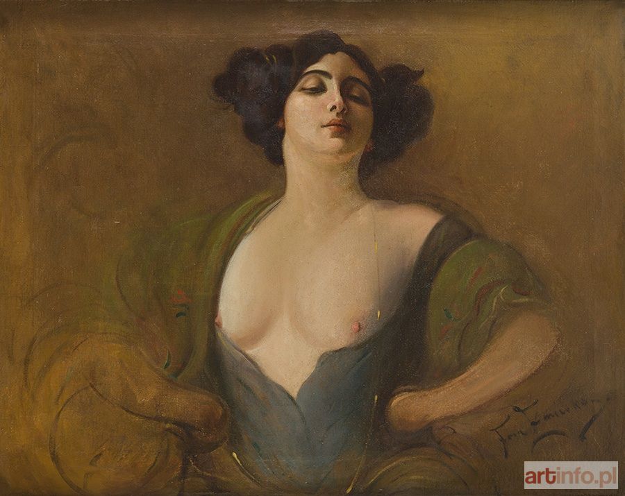 Jednak najlepiej sprzedającym się rodzajem twórczości, którą parał się Żmurko, były wyzywające wizerunki kobiet. Wyidealizowane, roznegliżowane niewiasty rozsławiły imię artysty, szczególnie wśród męskiej części publiczności. Prasa z przełomu wieków podkreślała, że obowiązkowym elementem wystroju "męskiego gabinetu" są właśnie "główki" Franciszka Żmurki. Prezentowana "Hetera", to chyba najbardziej charakterystyczny dla twórczości malarza typ kobiecego portretu. Podobnych prac powstało więcej, o czym świadczą reprodukcje w przedwojennej prasie i na kartach pocztowych. Wiele z nich wystawiał i sprzedawał za pośrednictwem salonów Józefa Ungra i Aleksandra Krywulta, lecz ówcześni krytycy szybko zaczęli ubolewać, że Żmurko "gonitwę za ideałem zamienił na pogoń za groszem" (Głowy kokotek F. Żmurki na wystawie TZSP, "Przegląd Tygodniowy" 1885, nr 41, s. 513). W tym kontekście warto przywołać błazeński incydent, opisywany przez dziewiętnastowieczną prasę jako "przykre zajście". Artysta dotknięty nieprzychylnymi recenzjami Antoniego Sygietyńskiego, miał zacząć go prześladować "szeregiem brutalnych napaści". Należały do nich obelgi, wygrażanie kijem, a także wysłane przez Żmurkę listy "o treści jaknajnieprzyzwoitszej". Znajomi malarze, wskutek zachowania kolegi, zredagować mieli dokument potępiający takie postępowanie. Sprawa znalazła swoje rozwiązanie na jednej z warszawskich ulic, podczas przypadkowego spotkania obu panów, kiedy malarz został przez Sygietyńskiego "skarcony ręcznie". Krytyk "Przeglądu Tygodniowego" nie znalazł jednak usprawiedliwienia swojego zachowania. Po samym incydencie w prasie można było przeczytać, że zarówno Żmurko, jak i Sygietyński "stanęli na jednym nieomal poziomie, gdyż obaj odbiegli zbyt daleko od granic przyzwoitości, a co ważniejsza niż osobiste ich losy, to że przynieśli wstyd innym kołom literackim i artystycznym" (Nepawa, Przykre zajście między F. Żmurką i A. Sygietyńskim, "Kraj" 1888, nr 17, s. 11).