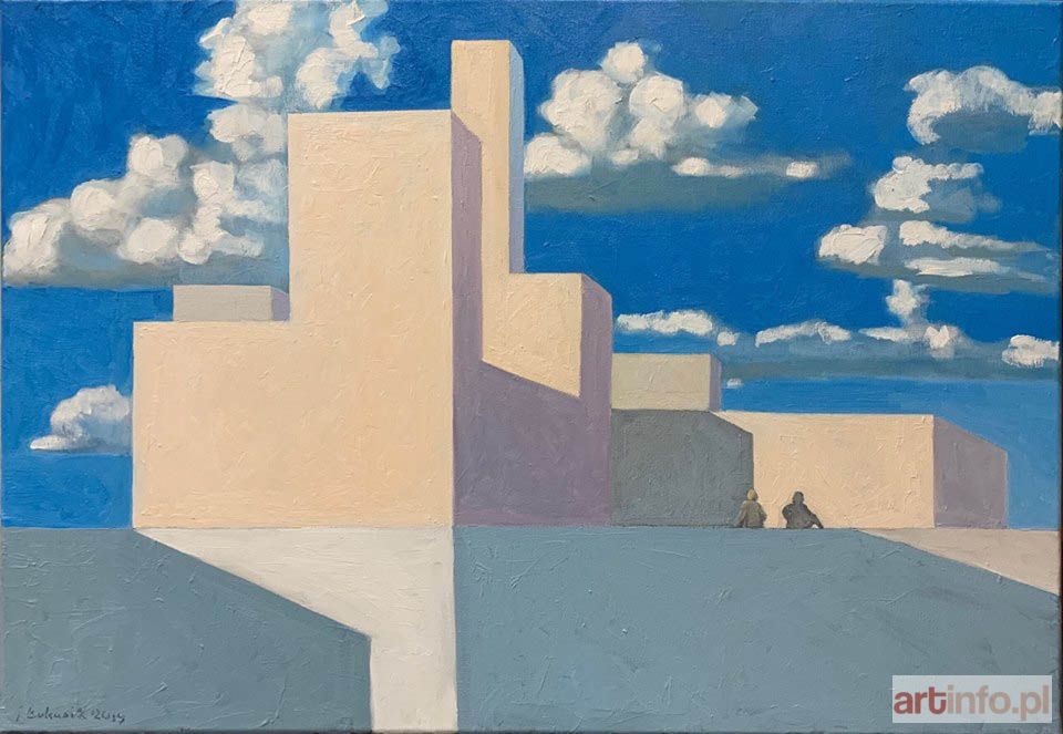 olej/płótno, 50 x 73 cm, sygnowany i datowany l.d: J. Łukasik 2019, sygnowany, datowany i opisany na odwrociu: 'JAROSŁAW ŁUKASIK | „PEJZAŻ GRECKI” | olej na płótnie | 50 x 73 cm | JŁ'