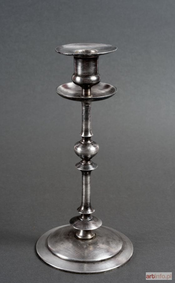 mosiądz srebrzony - tzw. nowe srebro, wysokość 23,3 cm, średnica podstawy 11 cm, sygnowany na spodzie: "WARSZAWA /FRAGET /PLAQUE" (w owalu) oraz literą "N" (w rombie) umieszczoną pod literą a w słowie plague; także liczba "14" na śrubie mocującej trzon lichtarza (numer katalogu?). Bardzo rzadkie!
