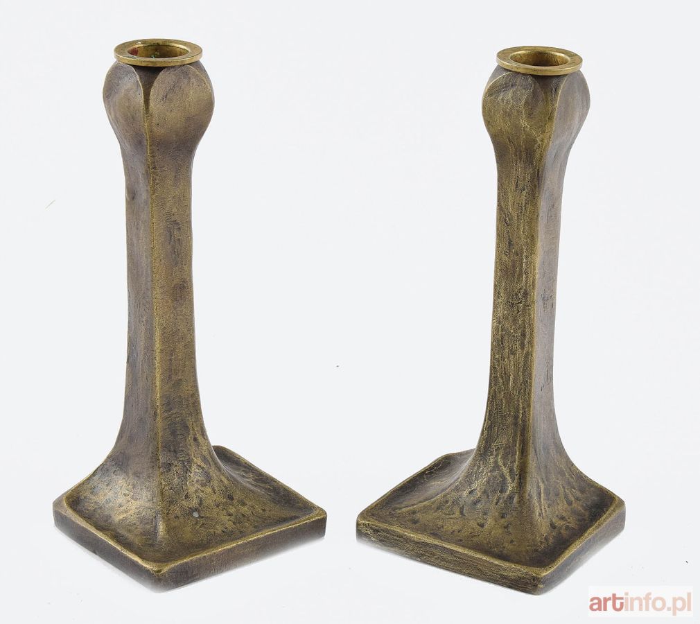 Podstawy prostokątne, wysklepione asymetrycznie; trzony 4-granne, u góry wybrzuszone kuliście, z ruchomą, cylindryczną tulejką. Na podstawach z tyłu sygnatura: „BR. ŁOPIEŃSCY / WARSZAWA” oraz słabo czytelne napisy: „DEPOSÉ”