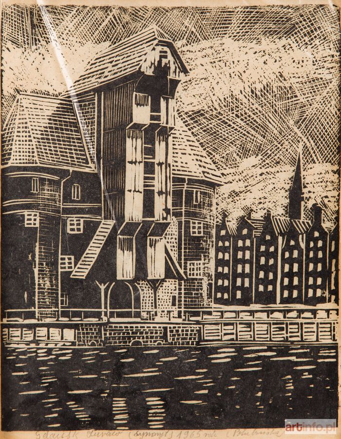 linoryt/bibułka, 32 x 25,2 cm (zadruk) sygnowany ołówkiem pod kompozycją p.d.: '(Połubiński)', opisany i datowany pod kompozycją: 'Gdańsk Żuraw (Lynoryt) 1965 rok' sygnowany ołówkiem pod kompozycją p.d.: '(Połubiński)', opisany i datowany pod kompozycją: 'Gdańsk Żuraw (Lynoryt) 1965 rok'