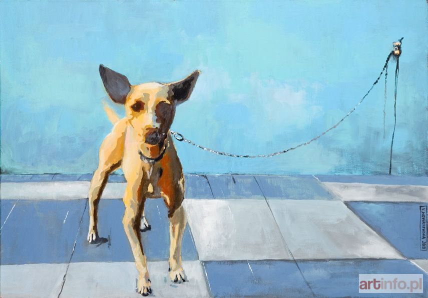 akryl/płótno, 70 x 100 cm sygnowany p.d.: `K. NOWAKOWSKA 2013` na odwrociu opisany: `KATARZYNA | NOWAKOWSKA | "NA UWIĘZI" 2013 | AKRYL 100 x 70`