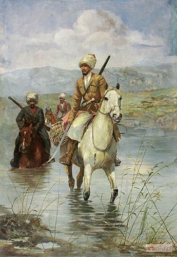 Malarz rosyjski, XIX/XX w. | Czerkiesi przeprawiający się przez rzekę