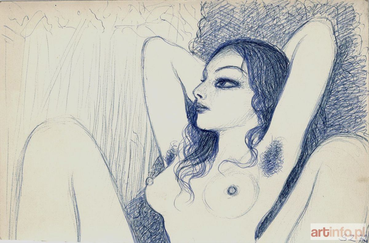 niebieski długopis, papier fotograficzny, 11,5 x 18 cm, sygn. monogramem p.d.: S Z 72. Praca ze zbiorów rodziny artysty.