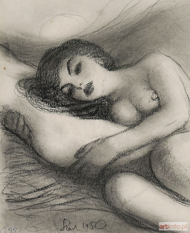 ołówek, węgiel, papier; 14,7 x 18,2 cm; sygn. u dołu: SŻech 1950; nr l. d.: 395; na odwrocie opis autorski: Erotyk (Basia) Konarzewska/ 15 x 18 1950 kred + węg