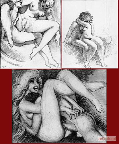 1.ołówek, papier 11,5 x 17,5 cm (w świetle oprawy); sygn. z prawej: S Ż 2.długopis, papier 12 x 17cm (w świetle oprawy); sygn. z prawej: S Ż 3.ołówek, papier 15 x 13 cm (w świetle oprawy); sygn. l.d: S Ż 33