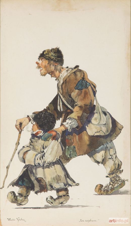 akwarela, tusz/papier, 48 x 28 cm sygnowany l.d.: 'Włodz. Kuhn' i tytuł p.d.: ' "Za węchem" '