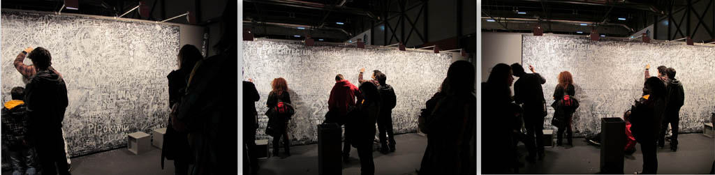 Opening to też nowość tegorocznych targów. Uczestniczy w tej sekcji 19 galerii europejskich (nie ma wśród nich hiszpańskich), zaproszonych, więc nie przeszły przez komisję kwalifikacyjną, które istnieją nie dłużej niż 8 lat. Same wybierają artystów, wśród nich sporo reprezentujących konceptualizm lat 70-tych. Są niemieckie, francuskie, holenderskie i po jednej z Londynu, Lisbony, Aten, Budapesztu i Lokal 30 z Warszawy. W trzydziestoletniej historii targów prace polskich artystów były wystawiane w galeriach hiszpańskich, niemieckich, austriackich, ale po raz pierwszy w tym roku przyjechała do Madrytu galeria z Polski. Jej dyrektor Agnieszka Rayzacher bardzo pozytywnie ocenia targowe doświadczenie, kontakty nawiązane z innymi uczestnikami targów, zainteresowanie zwiedzających, organizację i rozmach. Chyba w porównaniu z innymi międzynarodowymi targami sztuki w których galeria wzięła udział, m.in. już trzykrotnie w Bazylei, ARCO 2011 wypadły bardzo dobrze. Na standzie prace Zuzanny Janin, Anny Baumgart, Jana Mioduszewskiego, Karoliny Zdunek... Od rezultatów udziału w ARCO, od jej osobistych doznań, od zainteresowania kolekcjonerów, zwłaszcza od ilości sprzedanych prac, zależeć będzie obecność polskich artystów w dalszych edycjach spotkań w Madrycie. Entuzjazm pani Rayzacher wróży dobrą przyszłość.