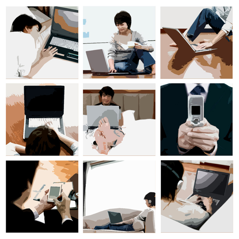 W cyklu Bezprzewodowo mamy do czynienia z próbą opisania różnych relacji, relacja z drugim człowiekiem, człowiek w świecie technologicznych gadżetów, samotność oszukana poprzez kontakt z wirtualnym światem.