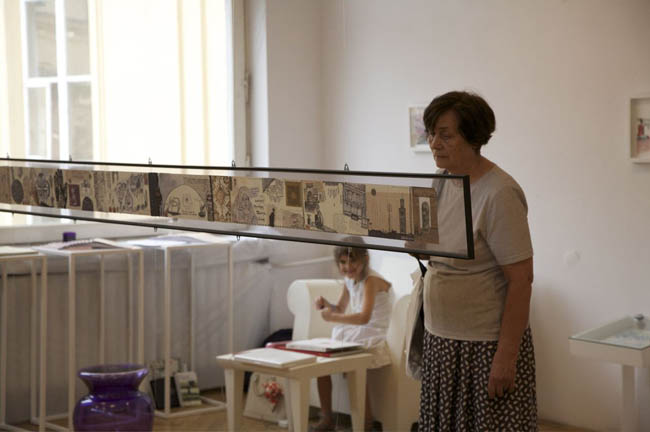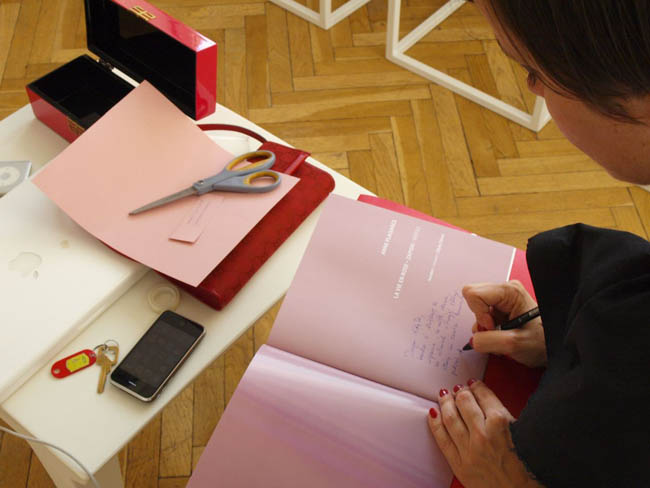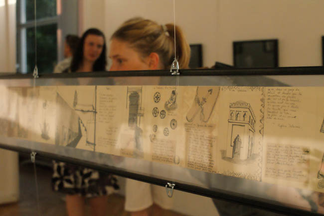 Wchodząc do sali wystawowej mamy wrażenie jakbyśmy wkraczali do osobistego świata Anne Plaisance. Zobaczymy tu serwantkę, gablotę, stolik, spotkamy nawet samą artystkę. W DAP-ie Plaisance pokazuje też Dzienniki – zapiski życia, które tworzy w czasie swoich podróży po świecie (m.in. Bali, Maroko, Kenii, Grecji, Nepalu). Tylko pozornie wyglądają one jak zwykły pamiętnik. „Ozdobiony wysokiej jakości papierem… czasem kolorową tasiemką… To pewnego rodzaju szkicownik, ale inny, oryginalny. Niebanalny notesik, który zawiera w sobie wiele zapisków.” – pisze w katalogu kurator wystawy Edyta Dzierż. I rzeczywiście, jeśli przyjrzymy się dokładniej, znajdziemy w nich szkice postaci i architektury, historyjki, collage, zdjęcia i zapisane myśli.