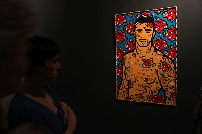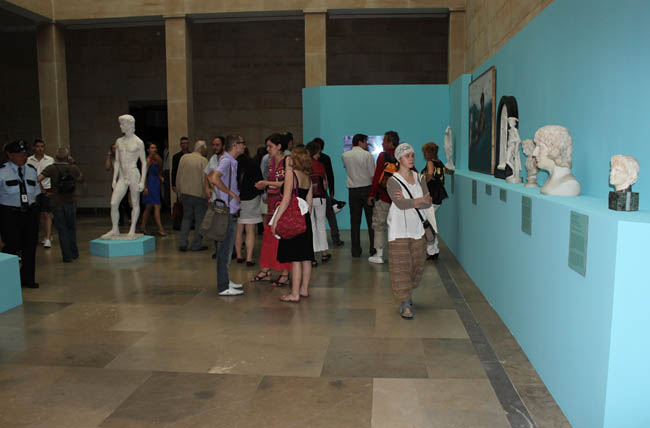 Na wystawie zaprezentowano około 250 prac powstałych od antyku aż do współczesności. Są to m.in. wazy greckie z przedstawieniami nagich młodzieńców, akty męskie w rzeźbie i malarstwie, a także dzieła współczesnych nam artystów z Czech, Węgier, Słowacji, Litwy, Ukrainy, Chorwacji, Rumunii, Polski, Rosji, Niemiec i USA. Należy zaznaczyć, iż kryterium wyboru prac nie była orientacja artystów, ale temat i kontekst dzieł. Kurator wystawy dr Paweł Leszkowicz podzielił przestrzeń muzeum na dziewięć działów tematycznych, w których dzieła sztuki dawnej zestawione zostały z pracami współczesnymi.