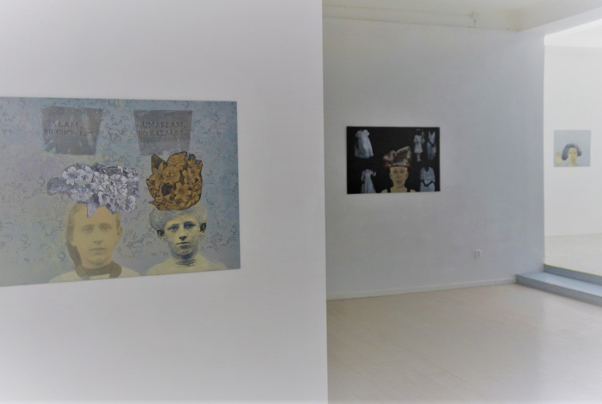 Ważną część wystawy stawowi instalacja, której źródłem jest szkolne zdjęcie z początku minionego stulecia pochodzące z Karlsbadu. Krystyna Piotrowska rozłożyła tę grupową, sepiową fotografię dziewczynek na indywidualne portrety. Ten gest podzielenia jest także pragnieniem zbliżenia się do osobistych historii, osobistych losów nieznanych dziewcząt. Te nowe portrety połączyła warkoczami, symbolicznie splatając ich życia w jedną, już nową historię. Oczywiście gest zaplatania włosów tak ważny w jej artystycznej ikonografii, i tym razem jest znaczący. Teraz jednak ich znaczenie związane z Zagładą, odchodzi w cień, wyrazistsze staje się pytanie o wspólnotę losów, o wspólny dziewczęcy świat, o dziewczyńską tożsamość, której symbolem zdaje się być warkocz.