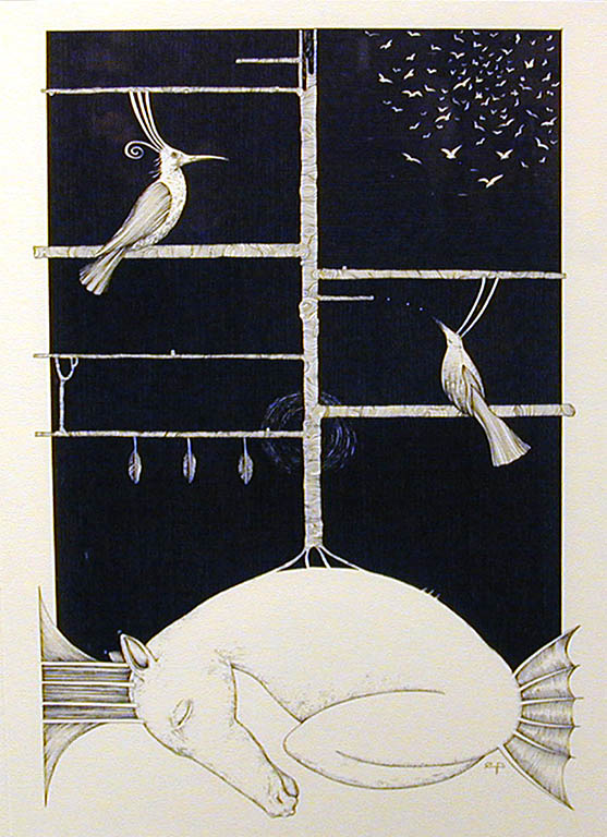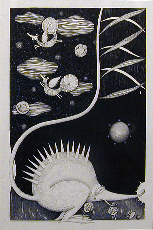 Pazyna z jednej strony poświęca się drobiazgowemu odwzorowywaniu rzeczywistości, z drugiej nie szczędzi sobie wycieczek w stronę fantastycznych, surrealnych światów. Korzysta w pełni ze średniowiecznego imaginarium, choć podchodzi do niego z większym luzem niż klasztorni skrybowie, którzy wierzyli w istnienie wielu fantastycznych roślin i zwierząt, dla nas będących już tylko przykładami z krainy baśni. Maślewski także rozszerza pole renesansowej inspiracji przechodząc do na wskroś współczesnych przedstawień, czasami surrealnych, a czasem niemal abstrakcyjnych. Finezyjna technika kreślenia rysunku przedstawień i delikatnych wypukłości oraz nadrealny pierwiastek w twórczości obojga artystów powoduje że, wystawa robi spójne wrażenie, a przedstawione dzieła wchodzą ze sobą w dialog i uzupełniają się wzajemnie.