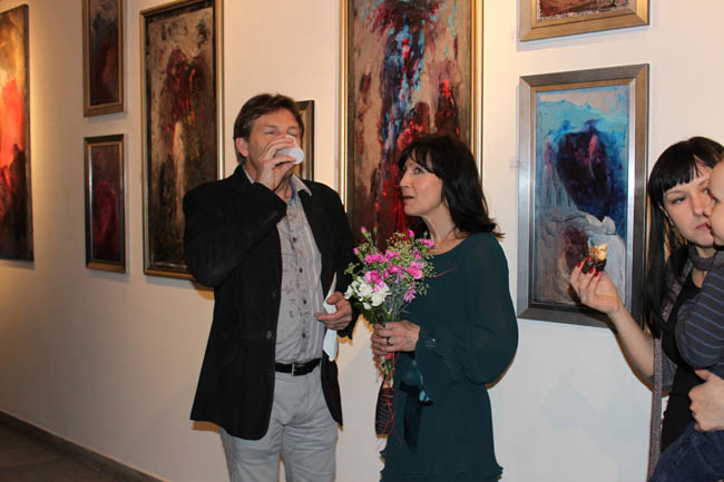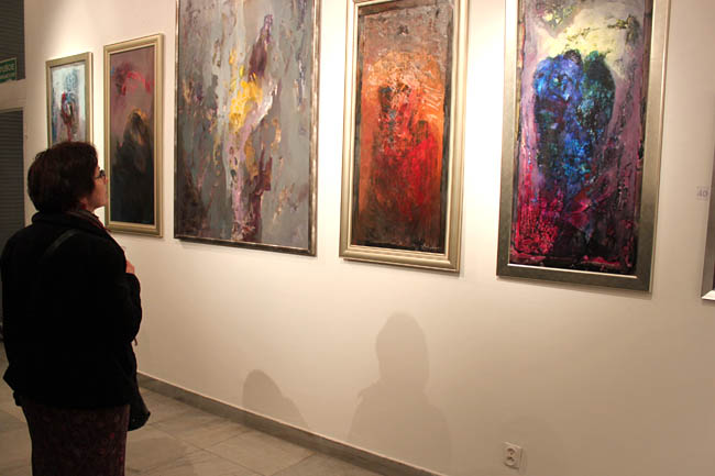 Tytuł wystawy - Święte obrazki i obrazy sprawia, iż widz szuka „świętości” w tych niemal abstrakcyjnych pracach. Na niektórych z nich widoczne są zarysy postaci i scen. Na innych, pozbawionych figuracji, jedynie tytuł sugeruje widzowi temat dzieła. Jak tłumaczy sam autor: „Ta świętość to ulotność, niezwykłość, uwolnienie od praw grawitacji”.