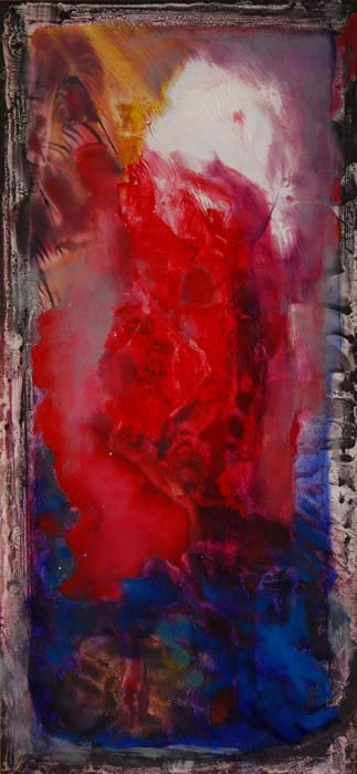 Zaprezentowane na wystawie prace mają formę wydłużonego prostokąta, wyeksponowanego w pozycji pionowej. Pamiętając rozciągnięte wszerz, panoramiczne pejzaże Maślankiewicza widzimy, iż artysta gra z formatami swoich dzieł. Obrazy różnią się od siebie rozmiarami. Jak sugerują to tytuły prace z cyklu Święte Obrazki mają mniejszy format, natomiast Święte Obrazy – większy. Dominują w nich nasycone barwy - błękity, szarości, żółcienie, czerwienie i zielenie, które wydają piąć się ku górze.