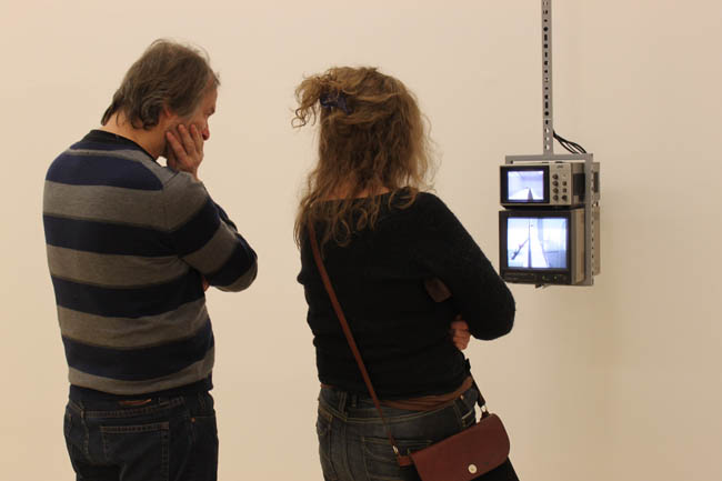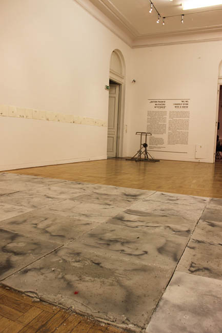 Na samym początku natykamy się na Bramkę Igora Krenza i Tomka Saciłowskiego. Wygląda dokładnie jak te, które mijamy w metrze. Ma jednak zupełnie inne zadanie, mianowicie artyści przymocowali do niej dwa uchwyty, tak aby widz mógł przez nią przeskoczyć. W tej samej sali Hannah Downing pokazuje kilkanaście rysunków których bohaterami są widzowie czynnie oglądający wystawy. Na przeciwległej ścianie zobaczymy cykl silence Michała Grochowiaka. To fotografie, na których artysta przedstawił anonimowe postaci, stojące tyłem, wpatrzone w jeden punkt. Przyglądając się im dokładniej zauważamy, że my sami jesteśmy bohaterami zdjęć. Do interakcji ze swoją pracą zmusza nas też Dorota Buczkowska. Jej instalacja to płyty wykonane z materiałów z jakich konstruuje się bomby. Wyłożone na podłodze galerii, tak by widz musiał po niej przejść do kolejnej sali.