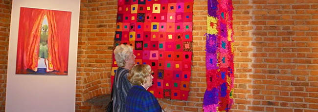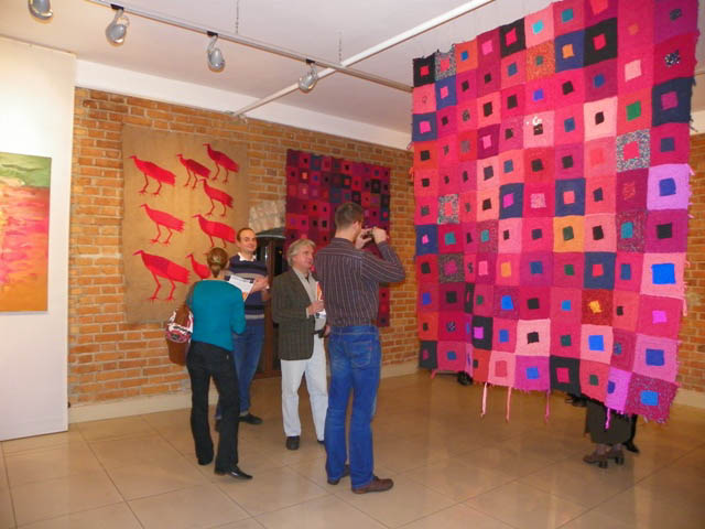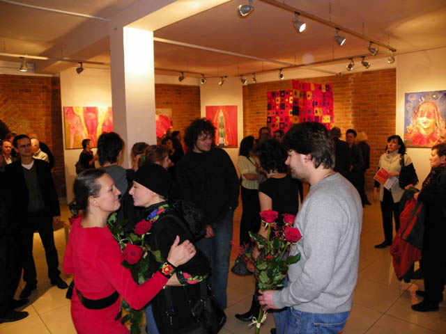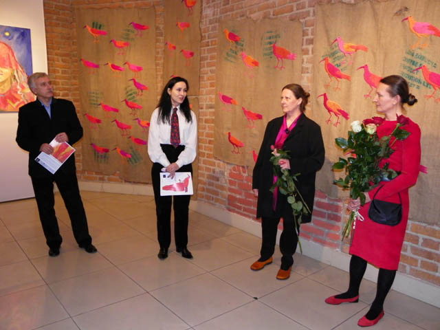 "Miłomarki w czerwieni" – obie malarki mrużą oko w stronę gości Starej Prochowni. A tak naprawdę proponują spotkanie na serio – porozmawiajmy o życiu i miłości, o tworzeniu i sztuce, odnajdźmy się w pobratymstwie bycia w świecie. Fundują przekroczenie estetyki przeżycia, prowokują rozważanie tego, co najważniejsze tu, gdzie się teraz znajdujemy. Obrazy Miłowskiej przywodzą na myśl skojarzenie z liryczną zasłoną. Są jak wiersze, mają własną narrację, dążą krótszą drogą do sensu niż fabuła, wywołują w umyśle pojęcia: miłość, śmierć, rozczarowanie, szczęście, prawda… Każdy obraz jest zdarzeniem poetyckim. Środki warsztatowe pozostają w ukryciu za odbiorem nastroju, który wyprowadza sztukę z życia, z nieznanego widzowi faktu. Postać ludzka zawsze wiąże te dwie rzeczywistości, pozwalając doświadczyć przez moment niepodzielności. Malarska płaszczyzna nie dzieli stron na zmysłową i duchową, na potoczną i artystyczną, realną i wyobrażoną. Wszystko jest w zasłonie, jaka uformowała się z materii. Renesansowo piękne sylwetki pozostały bez wykonczenia. Czysta, "boska" czerwień została zmącona niedoskonałością innych barw. Nic nie jest wiadome do końca, w sztuce – tak jak i w życiu – ideał nie osiąga całkowitego spełnienia. Malarskie wizje Markiewicz ulokowały się w rękodziełach z tkaniną. Spotkanie twórczości tych dwu artystek objawiło coś, co na osobności byłoby trudniejsze do wykrycia. Analogicznie moc oddziaływania tkanin i obrazów zakotwiczona jest w kompozycji, a kolorystyka udatnie pozoruje główne sprawstwo liryki. W geometryzacji u Katarzyny Markiewicz można się dopatrzyć czynnika poetyckiego i to on przede wszystkim umożliwia przejście od doświadczenia egzystencjalnego do konstrukcji artystycznej. W ten sposób rzeczywistość porządkuje się intelektualnie, potoczność zostaje poddana przemianie, stwarza się forma. Widz to poczuje jako wzruszenie, kiedy oko wyłuskuje punkty, w których łamie się idealny prostokąt w robocie ręcznej z wiotkich skrawków jedwabiu. Potem już nie dziwi, że ptaki na płótnie ze zużytych worków puszą się osobliwą urodą i w jakimś własnym szyku. To ptastwo z domu Markiewiczów nie ma antenatów w żadnym atlasie przyrodniczym, wszystkie okazy pochodzą z tego samego rodu, a każdy zajmuje wyjątkowe, jedyne miejsca, jakie mu wyznacza rzeczywistość sztuki. Utkane misternie lub haftowane połacie mogą być narzutą, obrusem albo dywanem, ale one są "do niczego" – tak jak wazon matki Różewicza. Gdyby kto wetknął igły w ptasi kształt powstały na miękkiej materii, to by od tego ogłuchł na artystyczny dźwięk poduszeczki. Dość wspomnieć poruszenie zasłony w rajskie ptaki na przyjęciu pani Dalloway, żeby rozmowa stała się fascynująca. Gdy rzeczywistość zewnętrzna budzi wyobraźnię w człowieku pod wpływem emocjonalnego impulsu, możliwości sztuki nie mają końca.