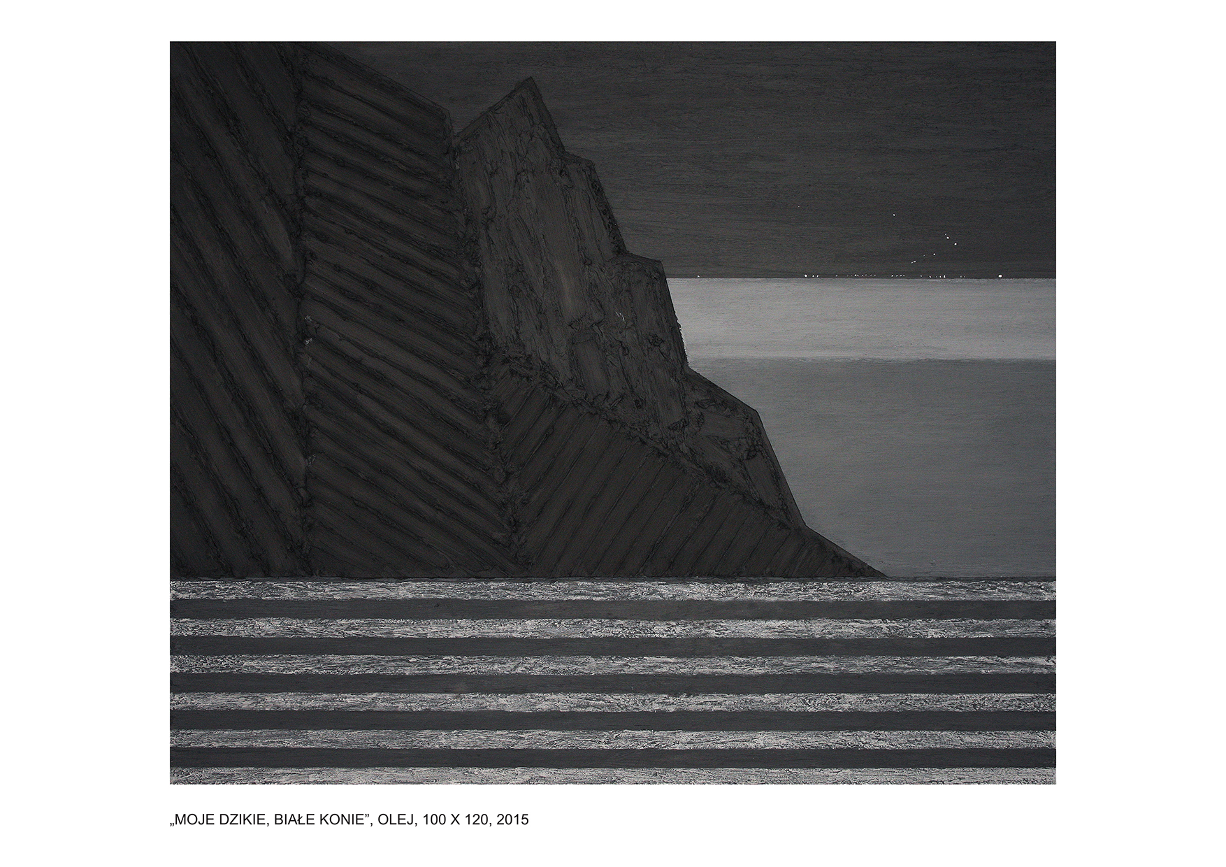 Wystawa Łukasza Rudnickiego na warszawskim Żoliborzu zapowiadała się interesująco. Wiedziony falą zaproszeń internetowych i zapowiedzi pojawiających się w sieci (sic!) zdecydowałem się wybrać osobiście na wystawę tego twórcy, o którym jak fama niesie, panuje opinia, że umie mieszać pędzlem. W dniu wernisażu zanurzyłem się dyskretnie w wieczornej aurze ciepłego wiosennego miasta i wypłynąłem na spotkanie przygody. Wśród szarych murów żoliborskich kamieniczek, majestatycznie sunąłem ulicą Mickiewicza -„Canale Grande” tej zielonej krainy, aby dotrzeć do miejsca przeznaczenia - portu, do którego zawitałem pierwszy raz. Była to kameralna galeria „wystawa”, która zachęcała już z daleka ciepłym światłem sygnalizacyjnym wydobywającym się niewielkich witryn okutych stalowymi ramami, za którymi majaczyły sylwetki pierwszych gości. Kto wie, może byli to już kolejni? Niewielki tłumek kłębił się już przed samym wejściem. Nie zatrzymywałem się jednak w tym przyjaznym gronie i bez ceregieli podążyłem bezpośrednio do wnętrza, aby obejrzeć prezentację. Ledwo znalazłem się tam, poczułem momentalnie zmianę. O ile ciepły wieczór majowego dnia skłaniał się ku zachodowi i wyrażenie rozleniwiał, a wnętrze galerii widziane z zewnątrz rozświetlało szarą uliczkę, nadając jej bursztynowego blasku, o tyle to, co zobaczyłem w środku, z miejsca mnie orzeźwiło. Mógłbym powiedzieć nawet, zamroziło - co by było przesadą, niewątpliwie jednak pierwszym wrażeniem, jakiego tam doświadczyłem była różnica temperatur. I nie mam na myśli stopni Celsjusza, ale morską przestrzeń, która opanowała tę zamkniętą przestrzeń. Chłodny stalowy koloryt wszystkich obrazów niezwykle kontrastował z ciepłym otoczeniem tego akwarium. Mocna, podniosła atmosfera obrazów wołała arktyczną ciszą, na którą składały się metaliczne dźwięki okrętowe zamrożone w lodowatej krze. O właśnie, jakiś zgrzyt roznoszący się w niezmierzonych przestrzeniach zamkniętych w klasyczne ramy obrazów dał się słyszeć każdemu, kto na moment nawet przerwał konwersacje i zerknął w stronę dowolnego płótna. I nawet ściszone rozmowy, przetykane wesołymi reakcjami skrzącymi się w potoku konwersacji nie były w stanie zmienić tego wrażenia. Ten dysonans zbudowany wokół ironiczno-patetycznej opozycji wydaje mi się zabiegiem celowym i niezwykle racjonalnym. Autor prezentacji Łukasz Rudnicki świadomy swojego warsztatu, tak zbudował swoje przedstawienie, żeby na zasadzie kontrastu, jak najlepiej zabrzmiały jego „okrętowe syreny”. Jako doświadczony kapitan, który z niejednego portu pompował paliwo, wiedział, że najlepszym sposobem na zwrócenie uwagi jest ostentacyjna opozycja. Bunt na statku ? Ależ skąd. Załoga, która zawitała na pokład tego dnia była jak zwykle sympatycznie nastawiona i skora do żartów. Nikt chyba jednak nie komentował tego dnia ani obrazów, ani treści współgrających z nimi tytułów: Ja cię kocham, a ty śpisz; Orzeł; Księżniczka Leia Ostrobramska; Już nie czekam na Ciebie; Znajdę Cię, odnajdę na pewno; Mors leniwie obserwuje balon; Jak nie śpisz, to Cię już nie kocham. Aurora. Martwa Fala, Jesteś moim skarbem. Forma i treść zdawać by się mogło kompletnie abstrakcyjne, objawiły się tego dnia niezwykle realistycznie, wręcz naturalistycznie. A cisza, która zapanowała wokół treści tam zawartych, odezwie się echem głośniejszym w przyszłości. Krzyk ciszy - jak mawiał Jan Oborniak - „kultowy autor” Stanisława Barei.