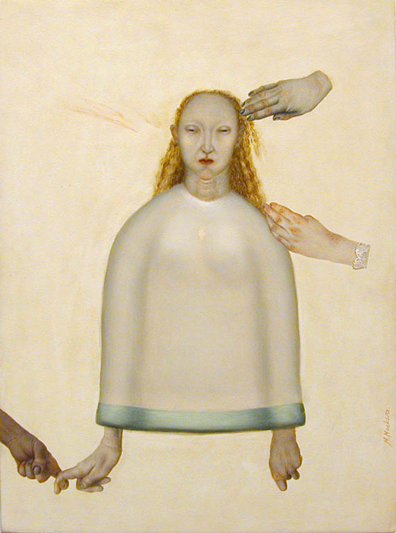 Jej bohaterki są dziwnie nieobecne i niezmiernie oryginalne, żyją we własnym świecie, w który po przełożeniu na malarstwo znaleźć można szczyptę akademizmu, wspomnienie portretu trumiennego, odrobinę Holbeina i Halsa, dosadność charakterystyki na granicy deformacji, która bliska byłaby zapewne Baconowi, a jednoczenie uproszenie rodem z malarstwa naiwnego. Kiedy w świecie Moskwy pojawiają się mężczyźni, to nie są oni realni, i nie są też pozytywnymi bohaterami. To podstarzałe satyry lub diaboliczne, muskularne demony. Są rekwizytem w kobiecym świecie, ozdobnikiem, ale też narzędziem wywieranej presji.