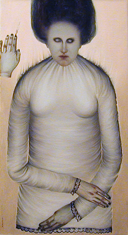 W jej pracach dominują ujęcia portretowe. Maluje ujęciu an face lub „w trzech czwartych”, dodając bohaterom, a przede wszystkim bohaterkom symboliczne rekwizyty, a także ozdobne tło. Tworzy tak zwane portrety psychologiczne, starając się odkryć problemy, traumy i uwikłania ludzkiej osobowości. Nie oszczędza swoich modeli, patrzy na nich bez sympatii i bez współczucia. W każdym z nich wypatruje odrobiny szaleństwa i histerii. Patrząc na jej prace ma się wrażenie, że bliską inspiracją mogłyby dla niej być fotografie realizowane dla doktora Charcota w Szpitalu Salpetriere w Paryżu pod koniec XIX wieku. Z drugiej jednak strony zna swoich modeli tak dobrze, tak precyzyjnie oddaje ich stany wewnętrzne, a raczej całe światy i pejzaże ich duszy, że można mieć wrażenie, że cały czas maluje siebie, bo nikogo innego tak perfekcyjnie poznać nie można.