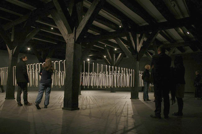 Instalacja site specific Biały cień, z serii Long Life Learning, jest swoistym apogeum zastosowania lasek jako środków wyrazu. W przestrzeni między charakterystycznymi drewnianymi słupami „unoszą się” setki lasek, przypominających te używane przez niewidomych. "Wnętrze jest więc wypełnione substytutami wzroku, którymi posługują się niewidzący, a ich ogromna liczba stawia odbiorcę w niecodziennej sytuacji, w której konfrontacja z tymi instrumentami dotykowego „widzenia” czy protezami, pomocnymi w rozpoznawaniu otoczenia przez ślepych skłania do namysłu nad sposobami percepcji rzeczywistości i zwraca uwagę na sensomotoryczny aspekt tych procesów. Uruchamia się inne widzenie, przekraczające to, co widzialne, na rzecz tego, co wewnętrzne, dotykowe, cielesne i tym samym ukazujące te kategorie postrzegania świata, które na co dzień pozostają uśpione." (Marta Smolińska, fragment eseju z katalogu wystawy)