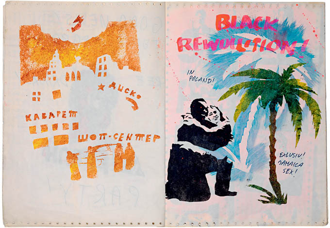 Na ekspozycji zaprezentowano obrazy, fotografie, rzeźby, szablony, ulotki, artziny, fanziny, filmy i nagrania z koncertów. W tymczasowej siedzibie MSN-u zobaczymy m.in. amatorski film pt. Dotknąć dźwięku nagrany podczas festiwalu w Jarocinie, artziny grupy Luxus, rzeźbę prezentującą psie odchody wykonaną przez Krzysztofa M. Bednarskiego, czy też obrazy - Ganja Marka Sobczyka ukazujący generała Jaruzelskiego i Adolf Hitler Włodzimierza Pawlaka z dyktatorem leżącym na plaży. Specjalnie na potrzeby ekspozycji odtworzona została rzeźba Mirosława Bałki przedstawiająca afrykańskiego cesarza Bokassę z 15-metrowym członkiem, którą pokazano w 1987 roku w warszawskim klubie Stodoła podczas wystawy Neue Bieriemiennost dla Jeana Bedela Bokassy.