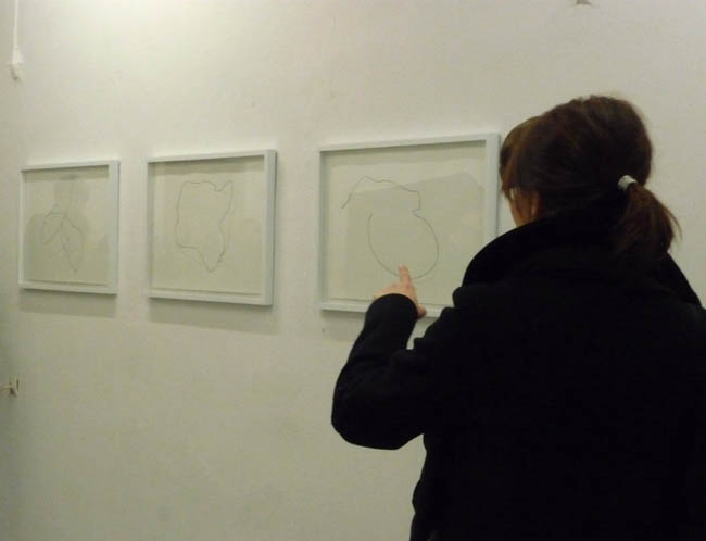 Czerń dyskretna, grafitowa, z metalicznym połyskiem ujawnia się w serii trzech rysunków pokazujących poprowadzoną linię drutu wraz z zaznaczoną linią jego cienia. Powstałe abstrakcyjne kompozycje, linearne abstrakty stanowią zapośredniczoną obrazowość z zaobserwowanej i zarejestrowanej przez artystę rzeczywistości.