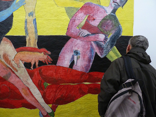 Formacja artystyczna Gruppa istniała między 1982 a 1992 rokiem, a jej legenda zdaje się, wraz z kolejnymi dekadami, coraz bardziej umacniać. Tworzyło ją sześciu bardzo młodych artystów, o zróżnicowanych i bardzo silnych osobowościach. Każdy malował po swojemu, ale czasem łączyli się w pary i tworzyli wspólne prace. I ten właśnie niewielki, ale bardzo ciekawy fragment ich dorobku przypomniano na wystawie. Łączyli swe siły - Sobczyk z Woźniakiem, Sobczyk z Modzelewskim, Woźniak z Grzybem, a nawet wszyscy razem na jednym kartonie. Czasami malowali siebie nawzajem, bywało, że w zabawnych konfrontacjach. Jeśli Modzelewski uwieczniał Kowalewskiego jako tułów bez głowy, to Kowalewski Modzelewskiego jako głowę bez tułowia. Bo oczywiście sporo w tych pracach było zgrywy, spontanicznych towarzyskich wygłupów.
