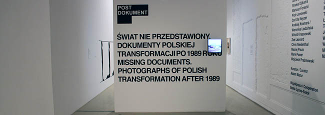Świat nie przedstawiony. Dokumenty polskiej transformacji po 1989 roku pokazuje prace ponad dwudziestu fotografów i reporterów z Polski i zagranicy (m.in. Anny Beaty Bohdziewicz, Rineke Dijkstry, Piotra Janowskiego, Carla de Keyzera, Witolda Krassowskiego, Zoe Leonarda, Chrisa Niedenthala, Michała Szlagi, Allana Sekuly, Konrada Pustoły Marka Powera, Macieja Pisuka, Wojciecha Prażmowskiego, Łukasza Trzcińskiego, Tomasza Tomaszewskiego, Wojtka Wieteski, Wojciecha Wilczyka i Mari Zbąskiej), którzy przez ponad dwie dekady rejestrowali nasz kraj.