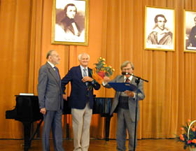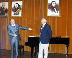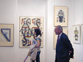 Sala koncertowa Podchorążówki, nie mała przecież, wypełniona została po brzegi, a miejsc siedzących zabrakło. Wśród gości znaleźli się liczni przedstawiciele środowiska artystycznego, intelektualiści i dziennikarze. Na sali byli m.in. Jan Dobkowski, Jan Pietrzak, Wiesław Ochman, Wojciech Siemion, czy Szymon Bojko. Wernisaż uroczyście otworzył Dyrektor Łazienek Królewskich prof. Marek Kwiatkowski, rówieśnik bohatera spotkania, co stało się pretekstem nie tylko do oficjalnych laudacji, ale także do snucia zupełnie prywatnych wspomnień z powojennej Warszawy. Wśród przemówień na plan pierwszy wybijały się barwne anegdoty z różnych zakątków świata, jakimi sypał, jak z rękawa, Tadeusz Łapiński. Wśród nich pojawiły się poważne i doniosłe gratulacje m.in. składane przez attache amerykańskiego, w imieniu honorowego patrona wystawy Ambasadora USA w Polsce Victora Ashe. Ambasador był osobiście nieobecny z powodu obowiązków związanych z najważniejszym amerykańskim świętem narodowym - Dniem Niepodległości. Myśl niepodległościowa, w takim miejscu jak Muzeum Wychodźstwa, i w obliczu wystawy wybitnego polskiego twórcy, realizującego swoją sztukę przede wszystkim poza krajem, była częstym tematem nawiązań i wypowiedzi samego Łapińskiego oraz jego gości. Nie zabrakło też słów uznania nadesłanych listownie przez Prezydenta Uniwersytetu Maryland, gdzie od wielu lat Łapiński pełni funkcję profesora. Wojciech Siemion, wielbiciel twórczości artysty, wizytujący każdą jego ekspozycję, czego zresztą nie taił, spontanicznie uświetnił wernisaż przygotowanymi specjalnie na tę okazję tekstami poetyckimi i literackimi, nawiązującymi tematyką do zagadnień sztuki i barw. Publiczne wyrazy uznania dla artysty złożyli też Wiesław Ochman i Szymon Bojko. Dodać trzeba, że wystawa Tadeusza Łapińskiego została także objęta honorowym patronatem przez Ministra Kultury i Dziedzictwa Narodowego Kazimierza Michała Ujazdowskiego.