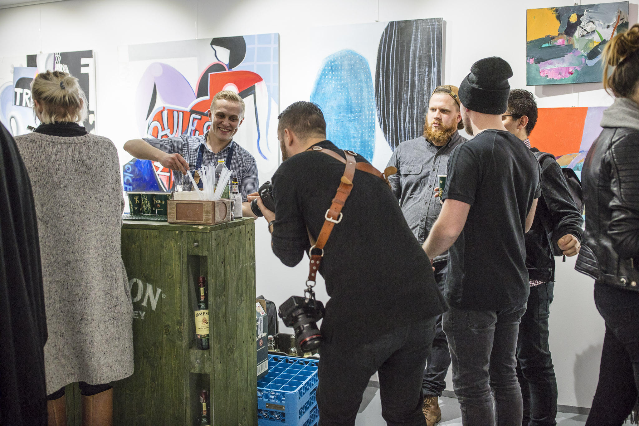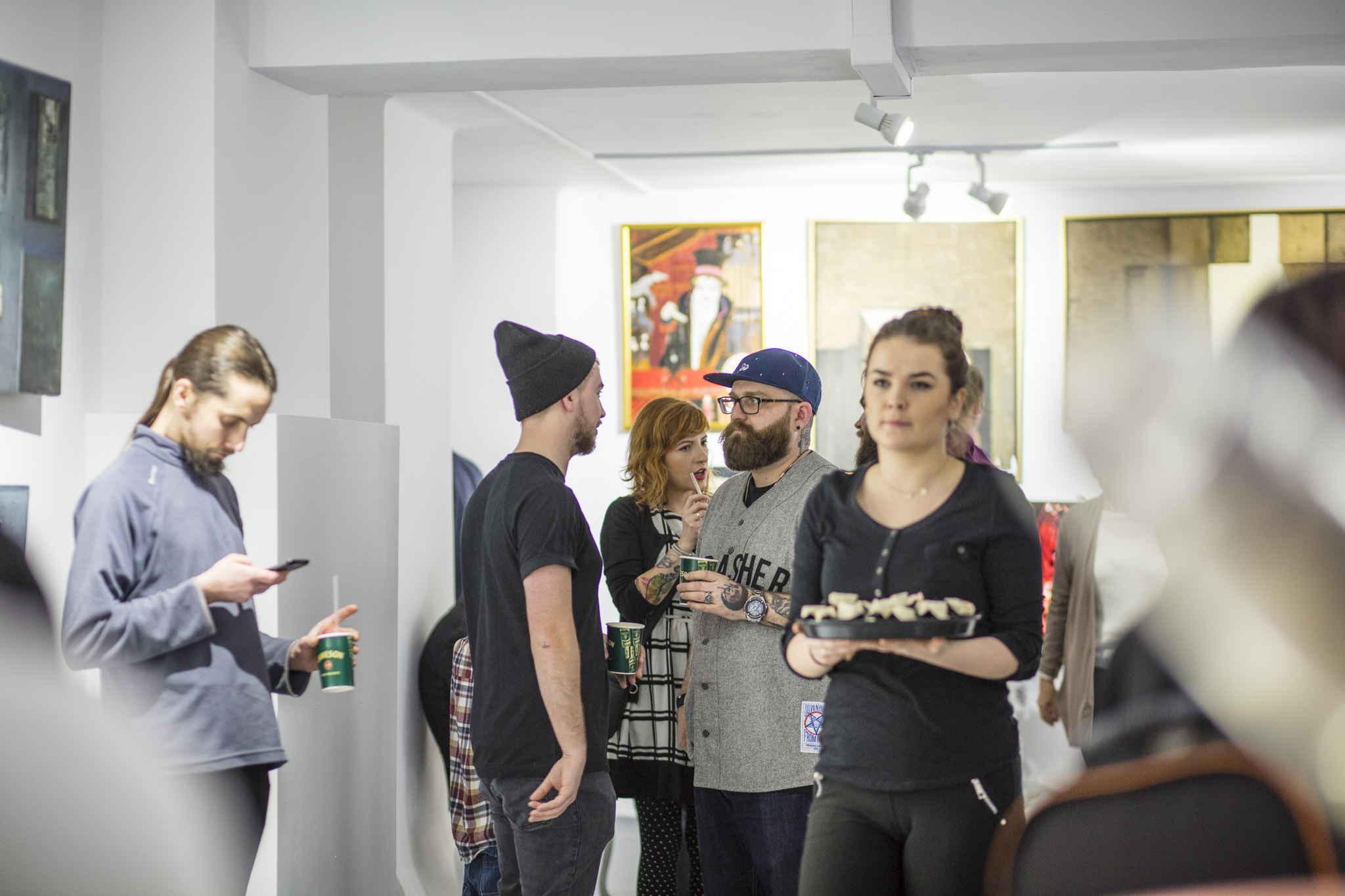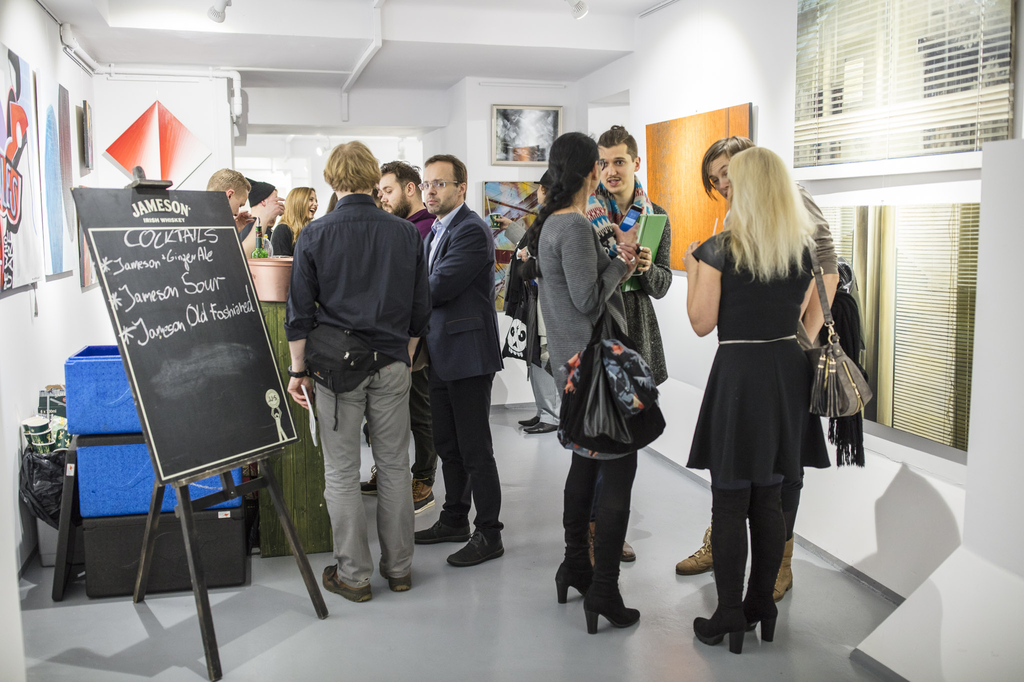 W trakcie piątkowej imprezy nie zabrakło okazji do rozmów z samymi artystkami, a także kolekcjonerami i innymi osobami związanymi z rynkiem sztuki - od krytyków po galerzystów. O dobrą atmosferę wieczoru zadbali partnerzy - trunki dostarczyły marki Lutzville oraz Jameson, dzięki którym można było skosztować win z południowej Afryki oraz doskonałej whisky, a zakąski serwował Osobisty Kucharz Filip Głodek. Za oprawę muzyczną wieczoru odpowiadał DJ Rawski, czyli Tomek Rawski znany z radiowej Czwórki.