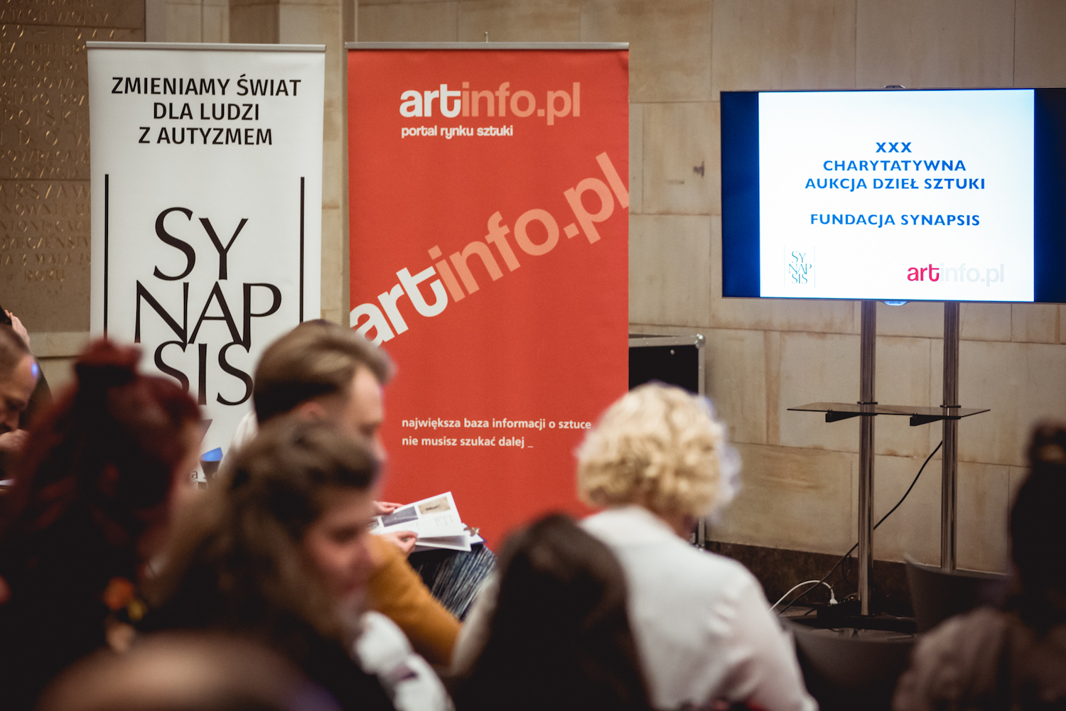 9 kwietnia w Gmachu Muzeum Narodowego w Warszawie odbyła się jubileuszowa, bo już XXX Aukcja Charytatywna Fundacji Synapsis. Uroczystego otwarcia aukcji dokonały: Wiceprezes Zarządu Fundacji Synapsis pani Joanna Grochowska oraz pani Karolina Wojtaś-Kudon - Kierownik Działu Komunikacji i Programów Publicznych MNW. Licytację z rozmachem i charyzmą poprowadził pan Marek Grzybowski. Aukcja zakończyła się spektakularnym sukcesem! Podczas godziny fundacja dla swoich podopiecznych zebrała prawie 90 tysięcy złotych!!! Najwyższą cenę na licytacji osiągnął obraz podarowany na aukcję przez Wojciecha Brewkę - wielkoformatowe dzieło „Trojan horse”, które zostało sprzedane za 11 tysięcy złotych! Wysokie ceny osiągnęły również grafiki komputerowe Zdzisława Beksińskiego (4,1 i 3,3 tys. zł) oraz rzeźba z brązu Dariusza Zielińskiego - Siedzący nosorożec - sprzedana za 5 tys. złotych. Mamy nadzieję, że w przyszłym roku rekord tegorocznej aukcji zostanie pobity.