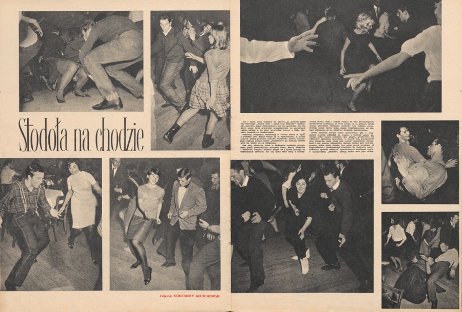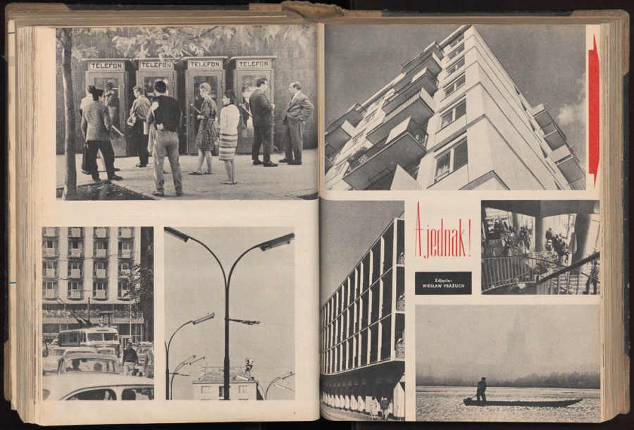 w Tatrach. Świetne technicznie fotografie Konstantego Jarochowskiego ukazujące „designerskie” wnętrza klubokawiarni medyków na warszawskich Bielanach, czy migawki z pokazowych mieszkań na Grochowie wyposażonych przez artystów „Ładu” w wielofunkcyjne meblościanki, zarejestrowały powszechne na przełomie lat 50. i 60. pragnienie nowoczesności i tęsknotę za piękną formą w codziennym życiu. Opublikowana w 1956 r. seria zdjęć Wiesława Prażucha z Częstochowy pokazała przedziwne oblicze tego wyjątkowego miejsca w Polsce, gdzie żarliwa modlitwa pielgrzymów zmieszała się z pejzażem tandetnych straganów i odgłosami sapiących hutniczych pieców wielkiego socjalistycznego kombinatu. Zainteresowanie Jana Kosidowskiego chwytaniem na gorąco życia polskiej młodzieży fotografowanej na warszawskiej ulicy lub podczas wykładów poświęconych filozofii przyniosły refleksyjne i liryczne dokumenty jak Młoda Rzeczpospolita Anno Domini 1963 czy Amicus Plato.