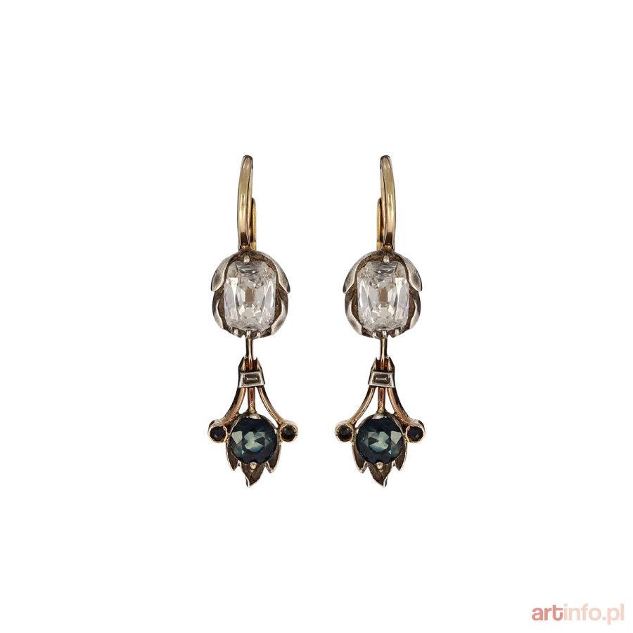 KOLCZYKI WISZĄCE Z DIAMENTAMI I SZAFIRAMI, XIX/XX W. ,