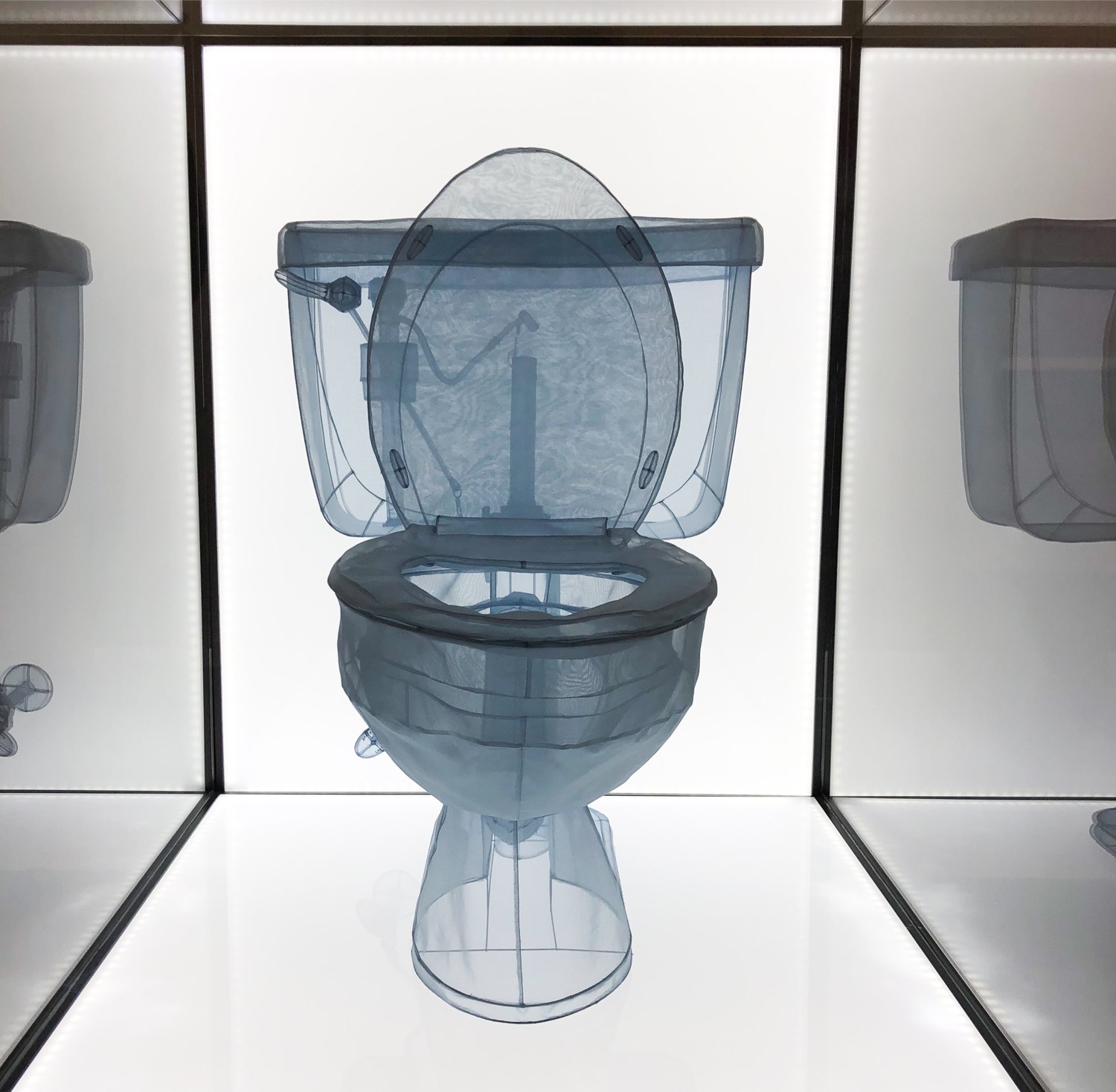Liz Magor „Being This” zapełniła natomiast całą ok 10 metrową ścianę pudełkami, w których umieściła złożone i gotowe do kupienia / sprzedaży ubrania z second handów. Każdy egzemplarz miał tak zagięty makiet rękawa lub w ten sposób dołożoną rękawiczkę, aby wskazywał bezpośrednio na metkę z nazwą firmy, nierzadko bardzo znaną, jak Chloe, czy Miu Miu. „Being This” obiecuje tytuł pracy. Będziesz tym co założysz i skonsumujesz. Kim chciałbyś dziś się stać? Wybierając produkt zakładasz maskę, która zakrycie twoje prawdziwe ja i będziesz nadal bezpieczny. Kup sobie bezpieczeństwo, wygodę. Nie ważne jest samo ubranie, praca. To co się liczy to metka i to kim ona Cię uczyni.